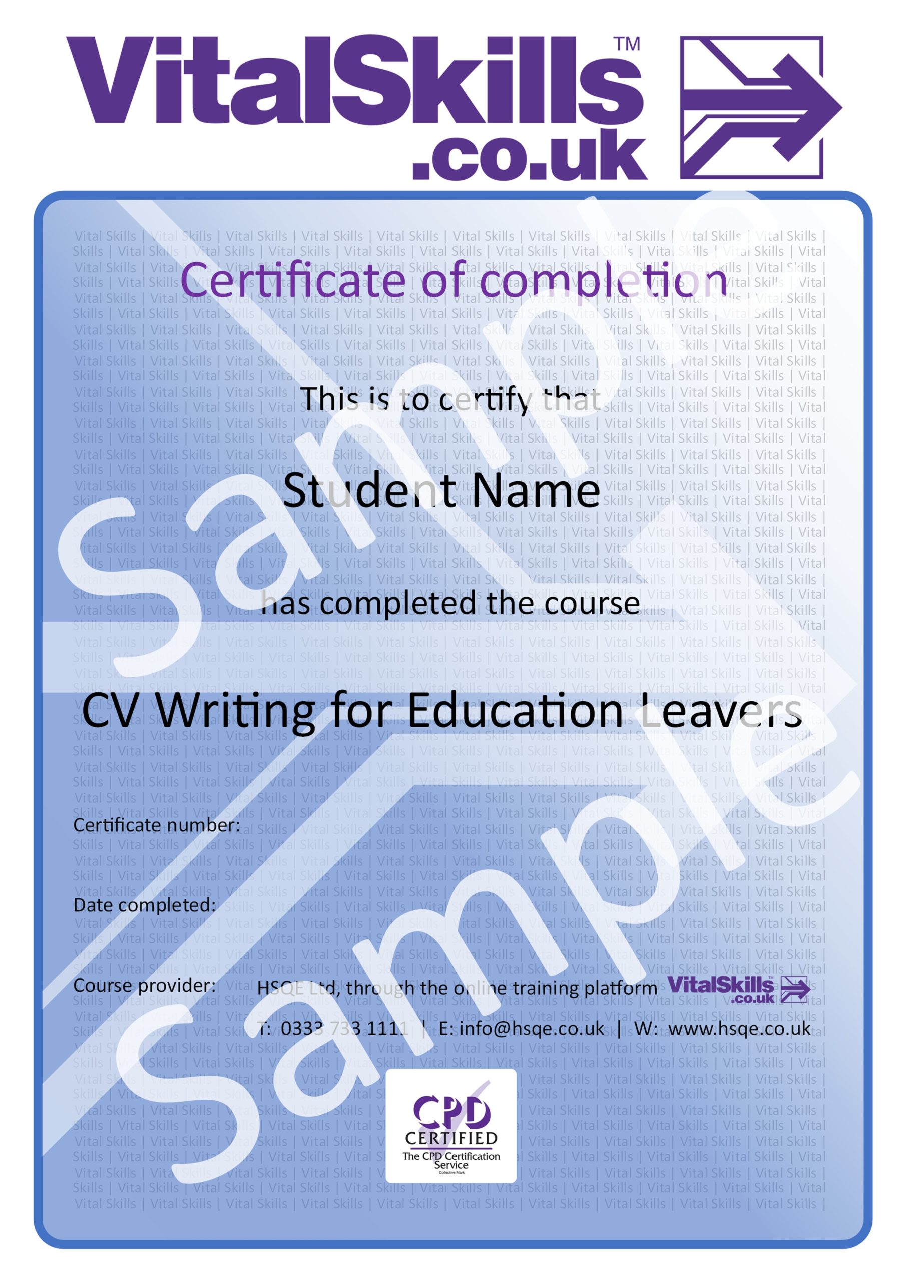 You will be sent an email from no-reply@myvitalskills.co.uk once you have made you purchase online or over the phone. Please check your email SPAM / JUNK folder if you do not receive the email as it may get blocked by your email firewall. If you have not received it within one hour, and it is not in your SPAM / JUNK folder, you can email support@hsqe.co.uk for a duplicate copy to be sent to you.